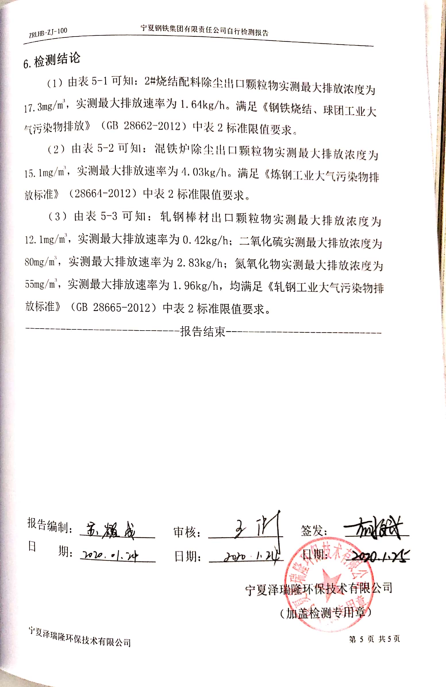 寧鋼2020年1月份自行檢驗(yàn)報(bào)告