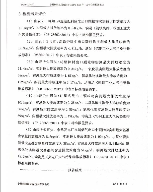寧鋼2020年7月份檢測報告
