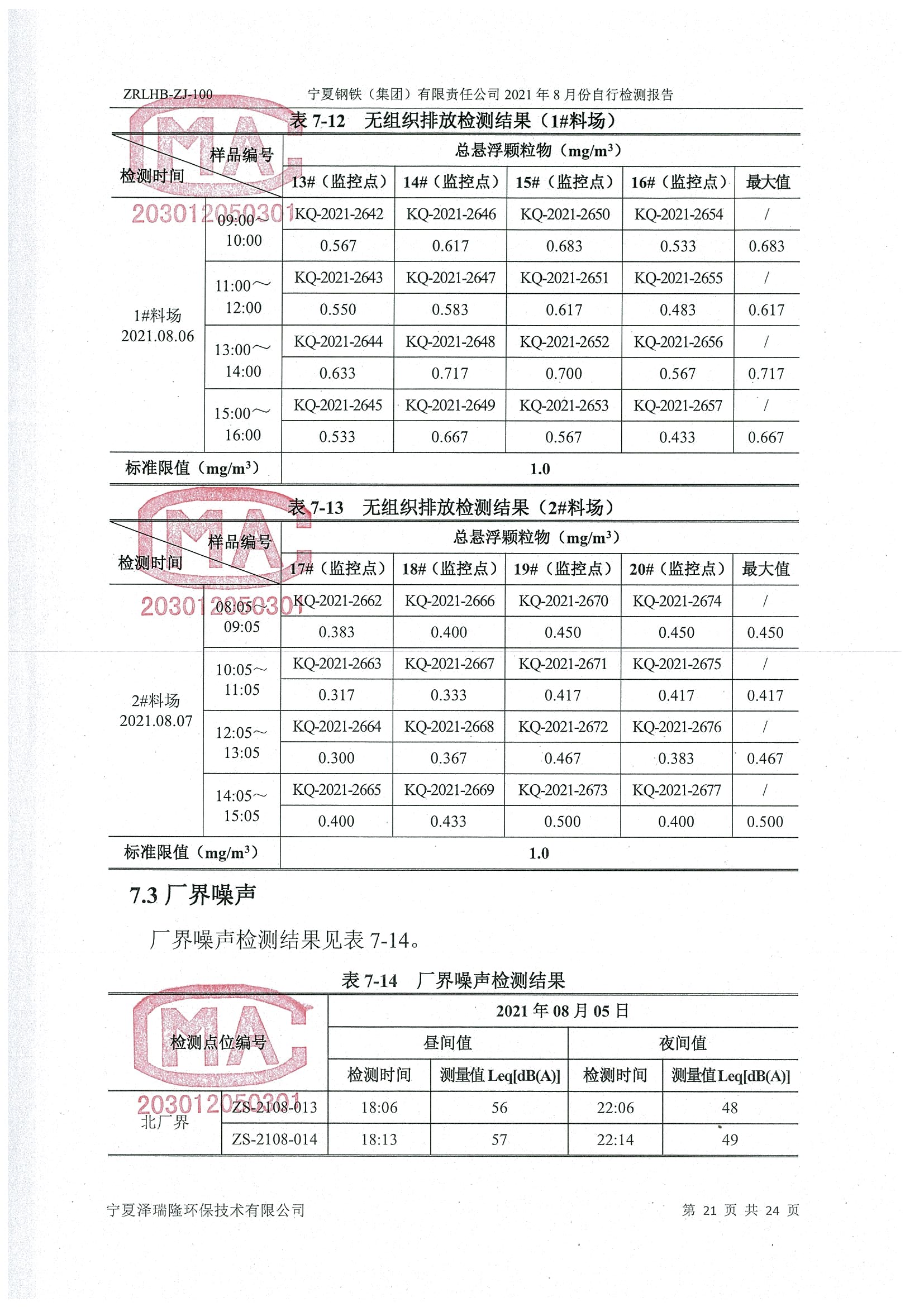 2021年8月份檢測報告