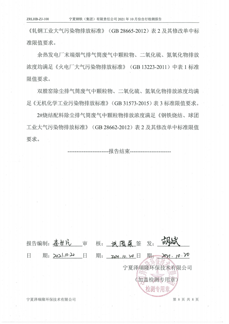 2021年10月自行檢測(cè)報(bào)告