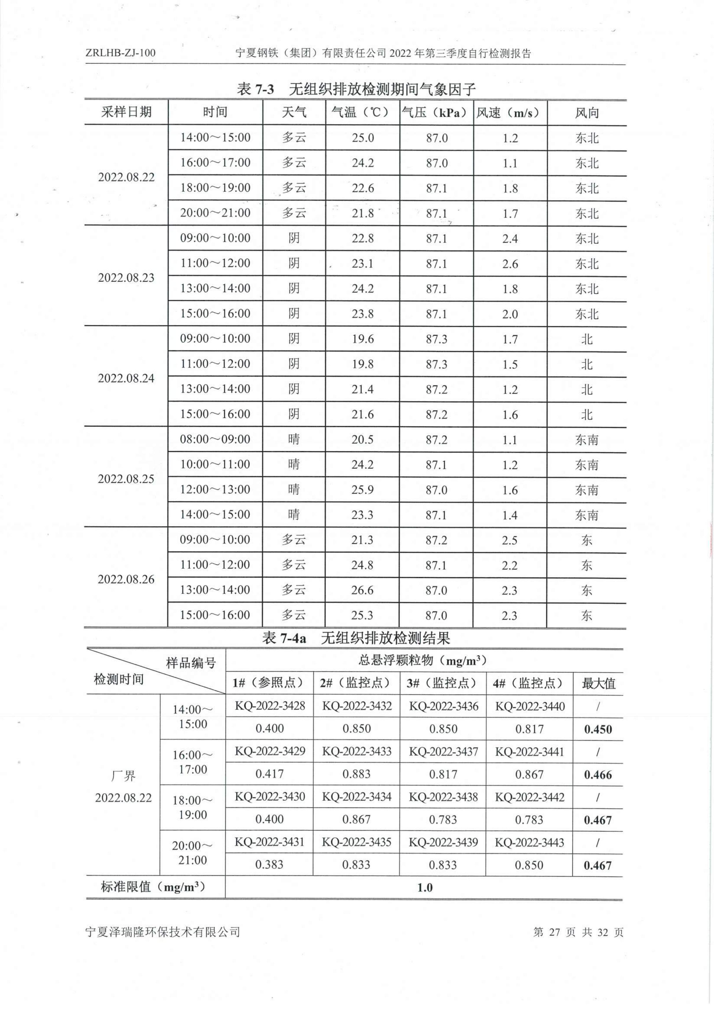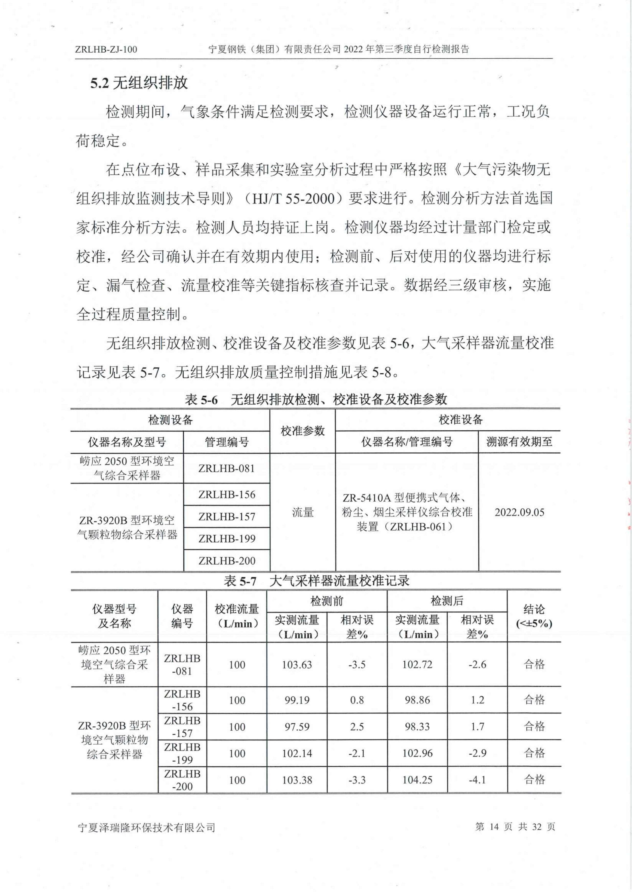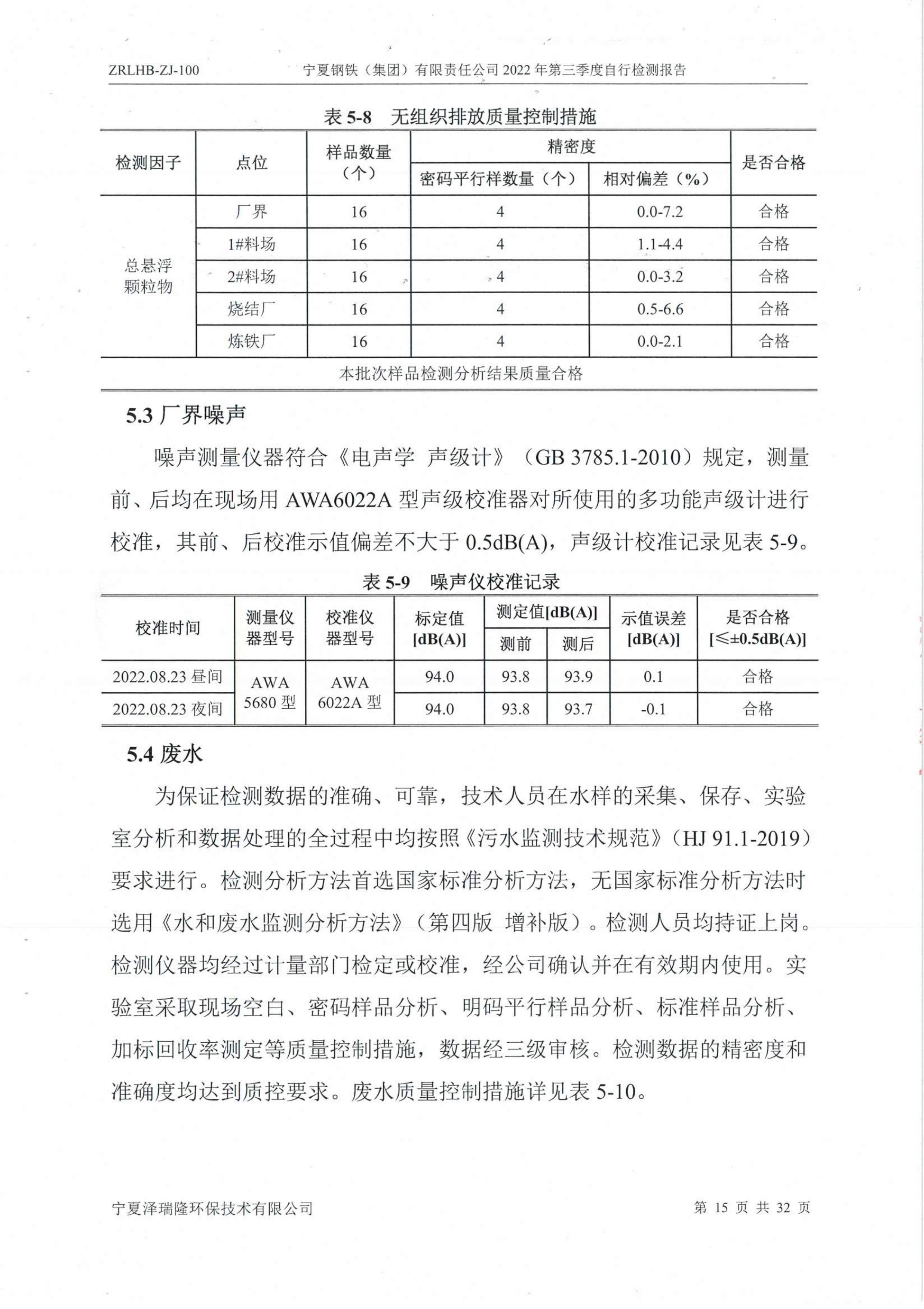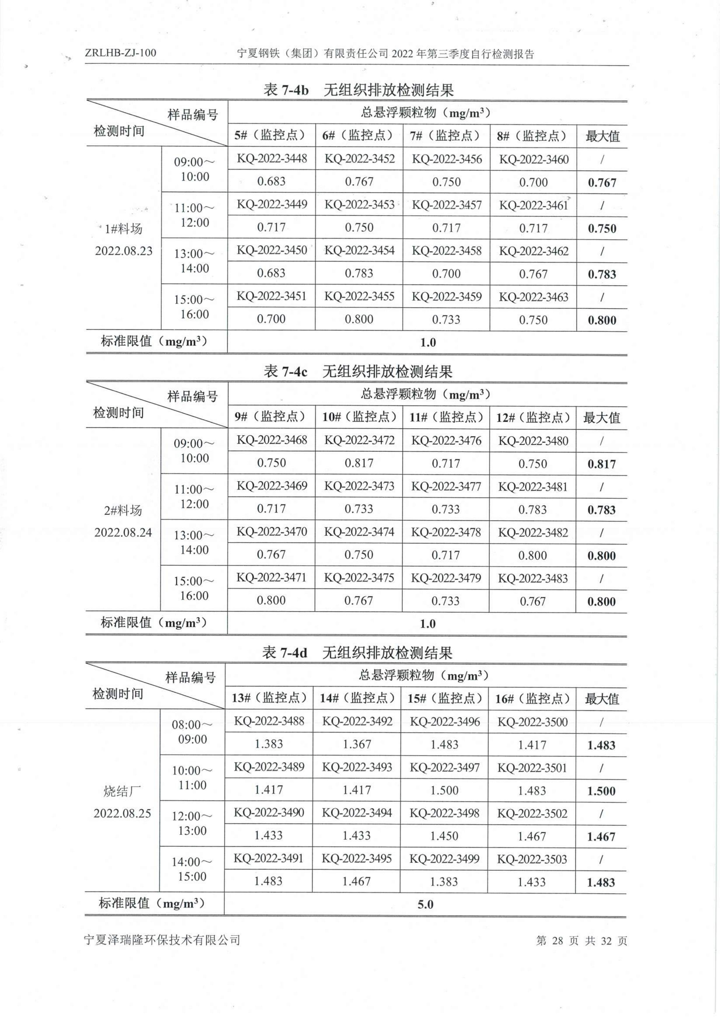 2022年第三季度自行監(jiān)測報告
